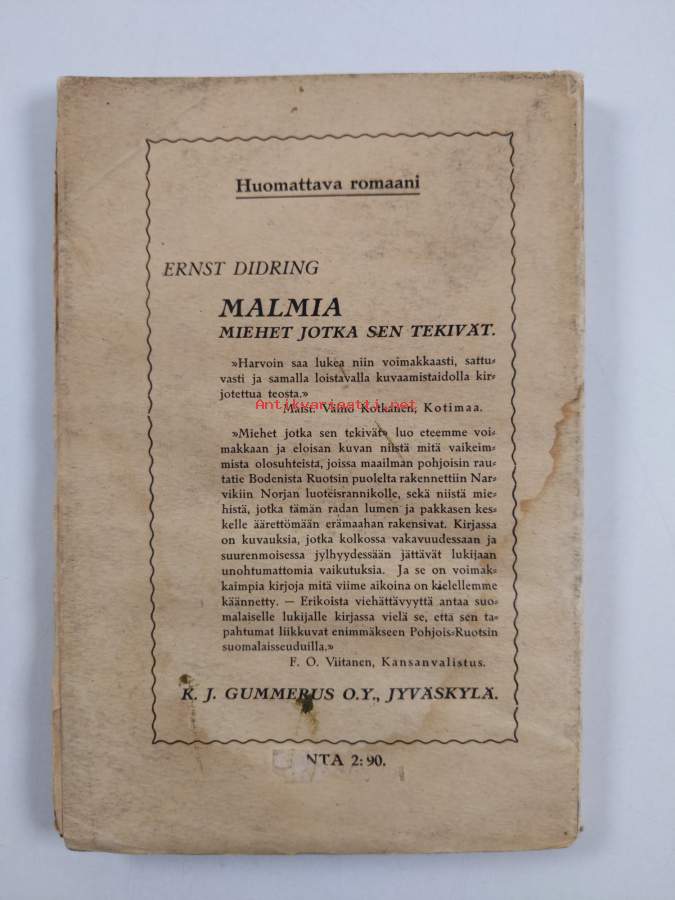 Tyydyttävä. Tarkempi kuntoluokka: K2- ; Hieman repeämää selkämyksessä, hieman rispaantumaa reunoilla ja kulmissa, selkämyksessä hieman vinoutta. kansissa ja sivuilla jonkin verran läikkää