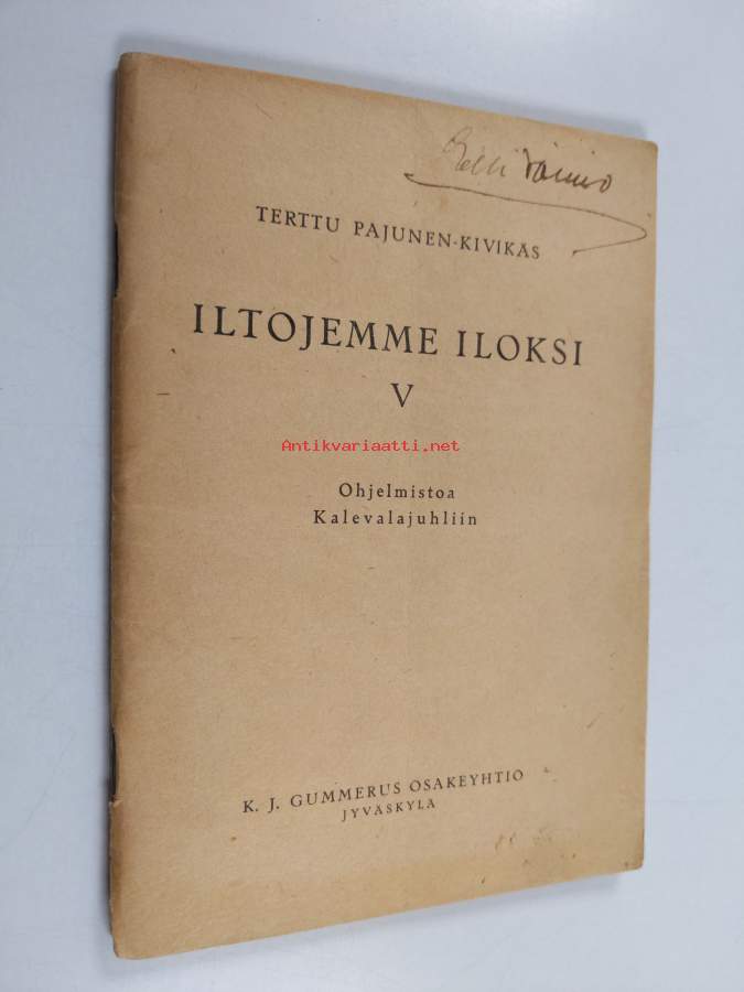 Iltojemme iloksi : juhlaohjelmistoa (signeerattu, tekijän omiste)