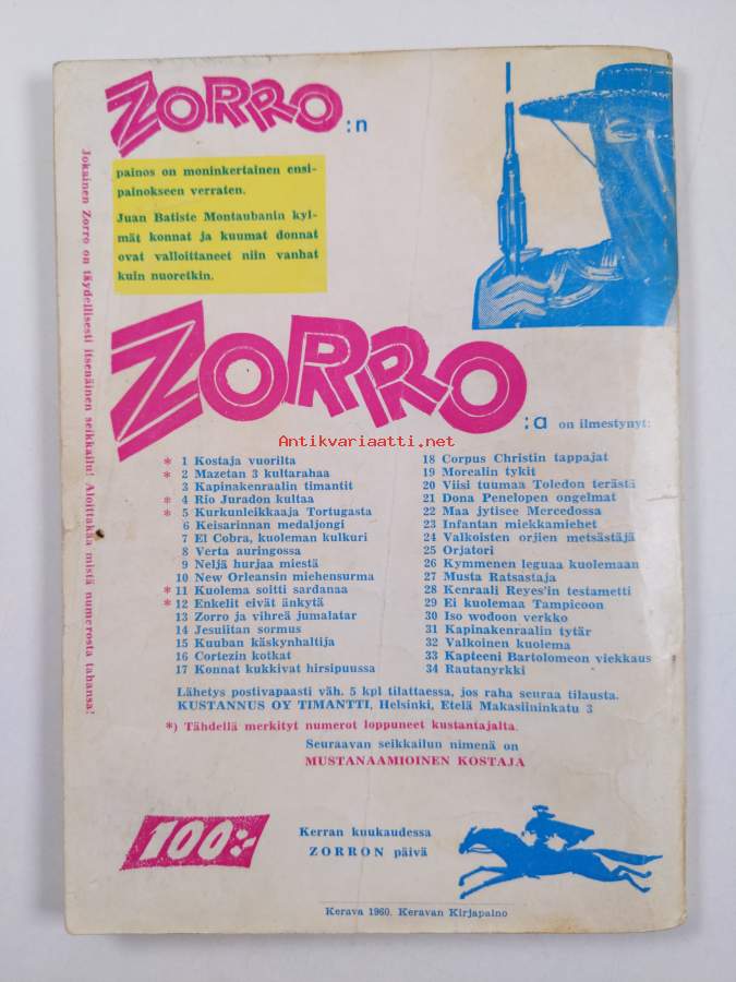 El Zorro n:o 36 1/1961 : El Zorro ja timanttivaras
