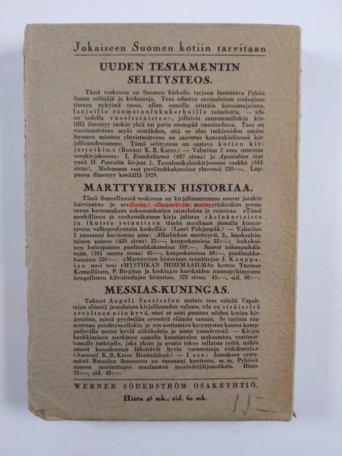 Tyydyttävä. Tarkempi kuntoluokka: K2+ ; Pienoista repeämää selkämyksessä, selkämyksessä aavistus vinoutta, selkämyksessä lukutaittumaa, sivut vielä osittain leikkaamatta auki eli osittain lukematon kirja