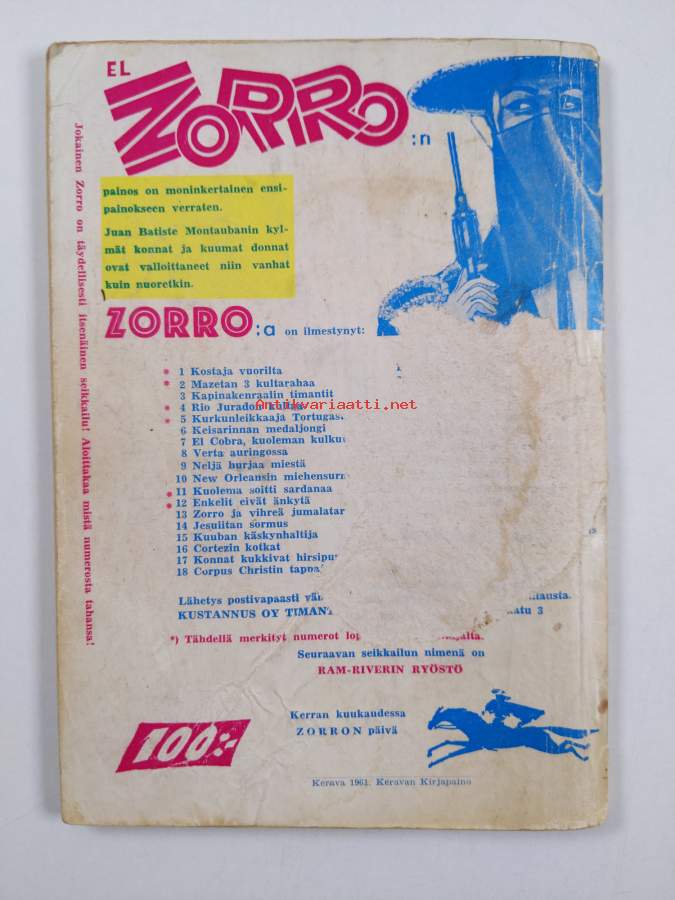 El Zorro n:o 36 1/1961 : El Zorro ja timanttivaras