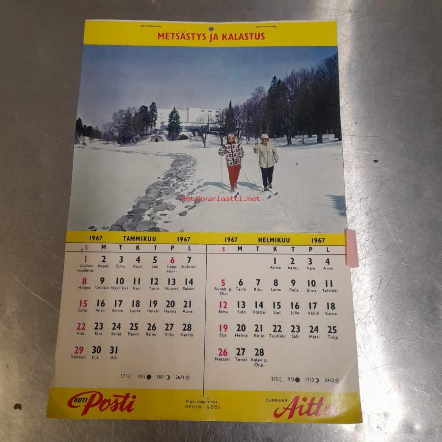 Kalenteri 1967 Metsästys ja kalastus, kotiposti,elokuva-aitta