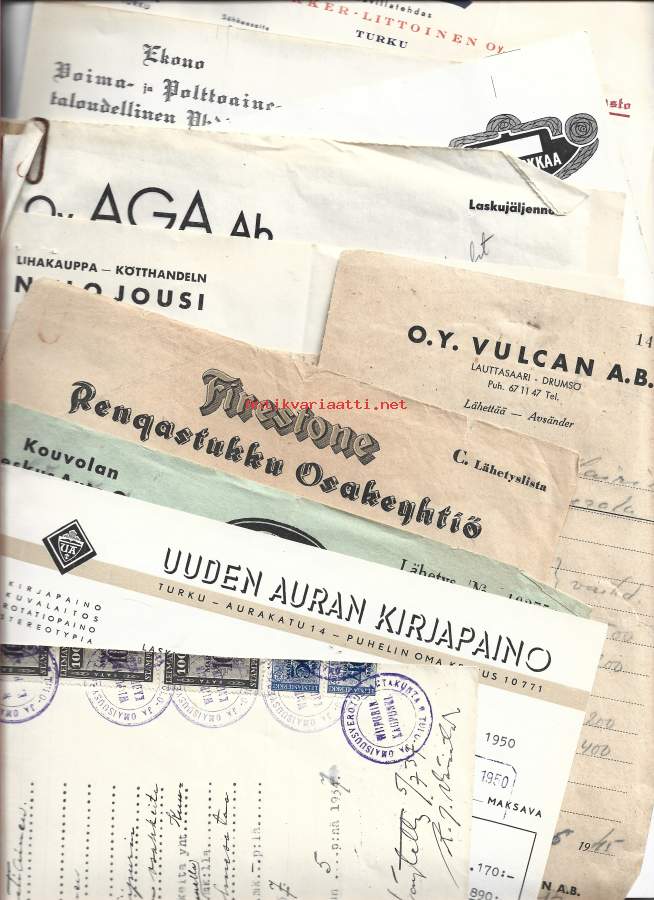 Turkulaisia firmalomakkeita 1960 l - firmalomake n 20 kpl erä