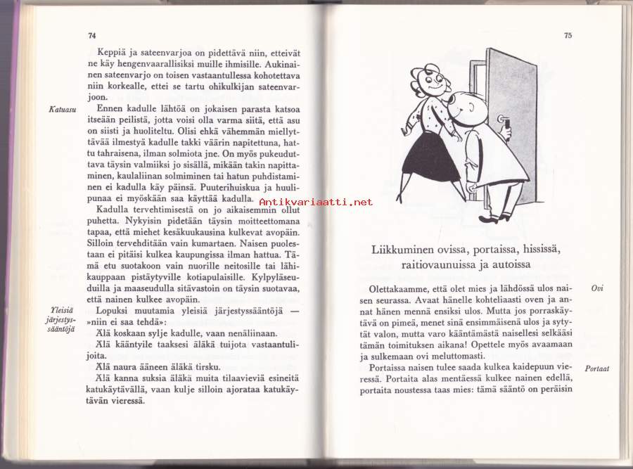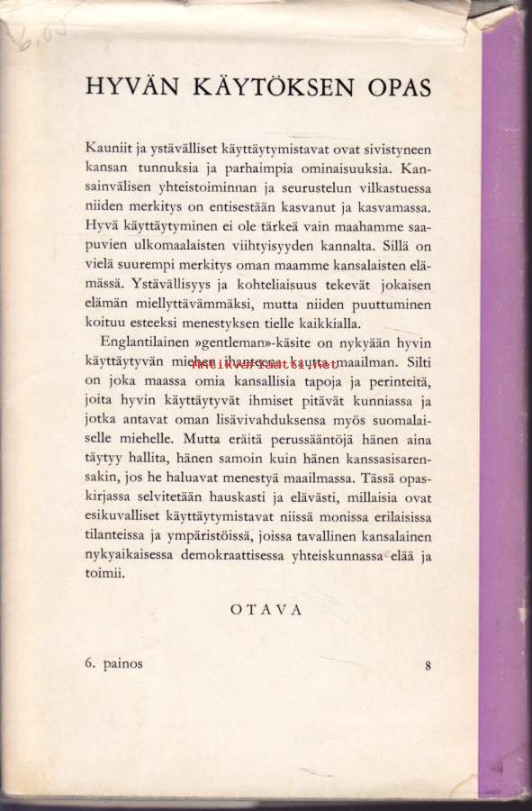 Käyttäytymisen perussäännöt 1960-luvun standardien mukaisesti. Hauskaa - mutta tarpeellista - luettavaa nykyajan käyttäytyjille, joille gentlemannien tapakulttuuri on jo muinaista historiaa, jos sitäkään.