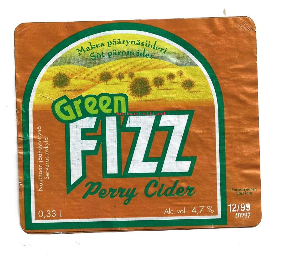 Green FIZZGreenPerry siiderietiketti, viinaetiketti