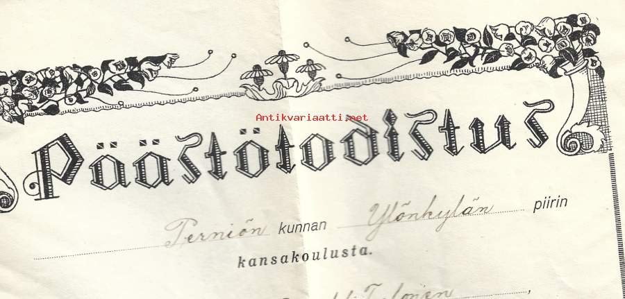 Perniön kunnan Ylönkylän piirin kansakoulu päästötodistus 1927 todistus