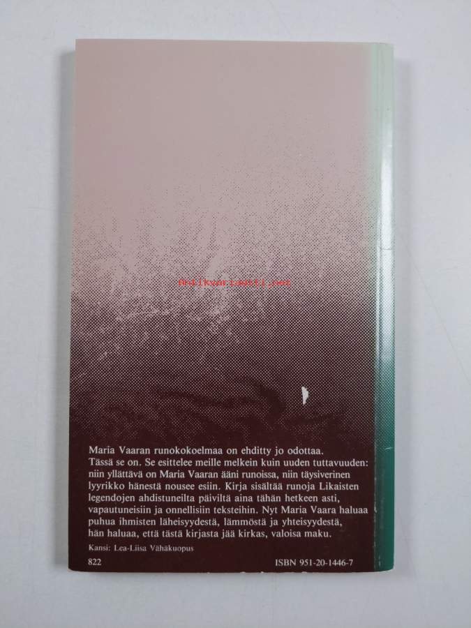 Hyvä. Tarkempi kuntoluokka: K3- ; Hieman kulumaa kansissa, selkämyksessä aavistus vinoutta. aivan pienoinen pintarepeämä takakannessa