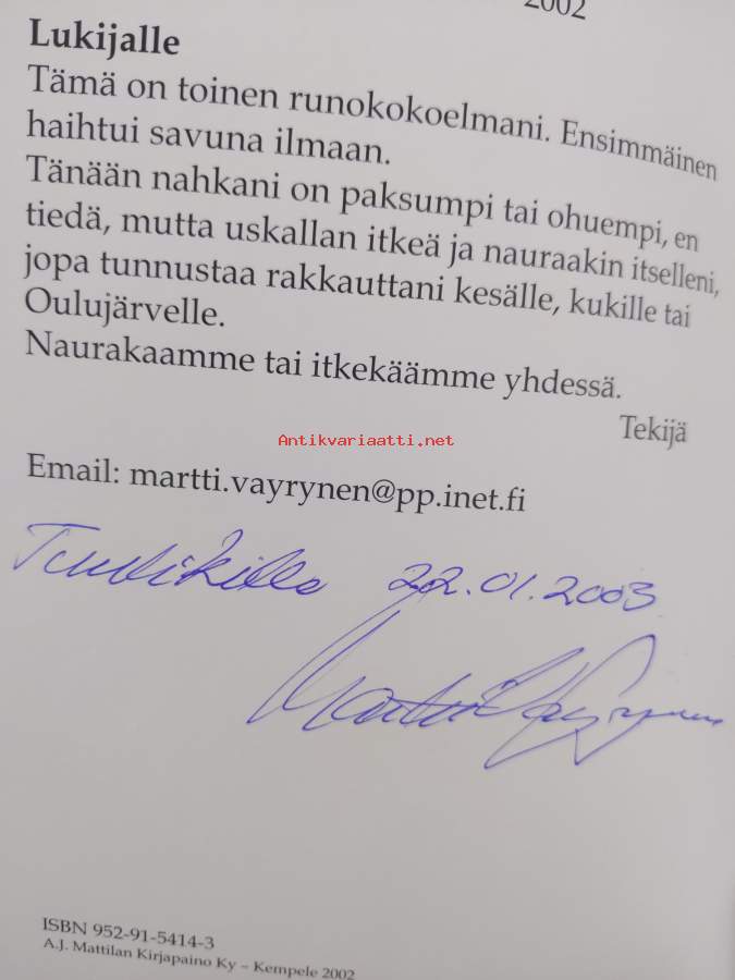 Rakentajan unelma : runo-coctail Kainuunmereltä Senegaliin (signeerattu, tekijän omiste)