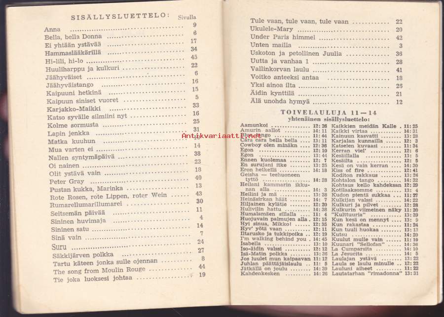 Toivelauluja : Iskelmien aarreaitta. 50Julkaistu:Hki : Fazer, 1962