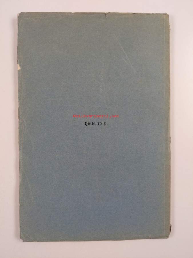Tyydyttävä. Jonkin verran repeämää kansissa. Kansipaperin kunto: kulumaa/pienehköjä repeämiä & tahraisuutta / etukannen yläreunasta puuttuu palanen