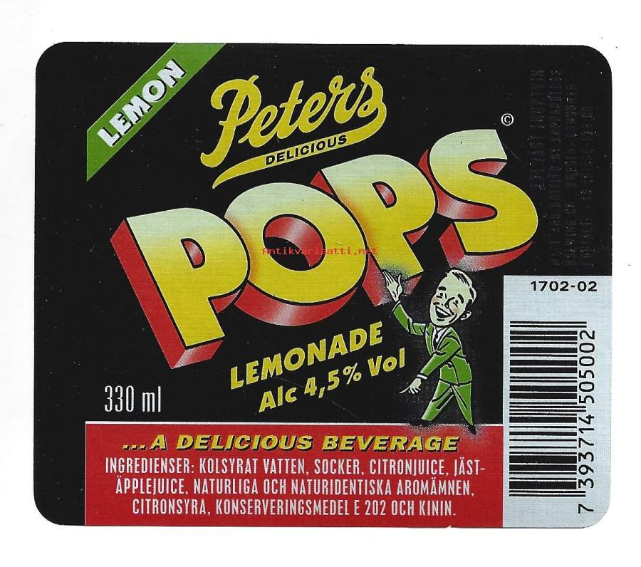 Peters POPS lemon 4,5 % viinaetiketti