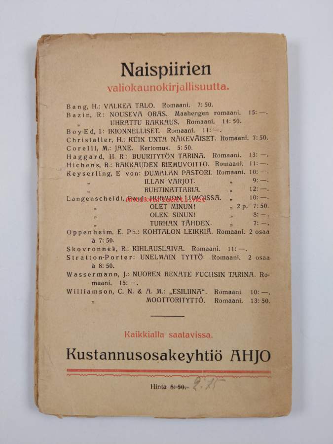 Tyydyttävä. Tarkempi kuntoluokka: K2+ ; Hieman repeämää kansissa, selkämyksessä hieman vinoutta