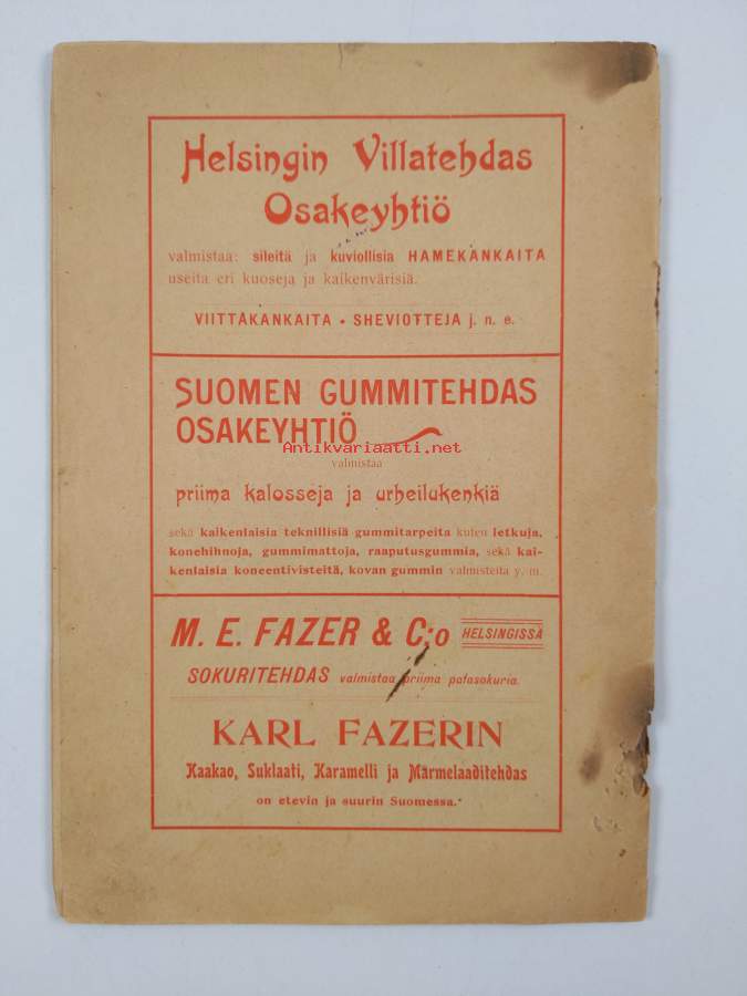Kotimainen työ kansalaisten kannatettava ! 1902 ... vaikeat ajat, joita kansamme viimeksi kuluneina vuosina myöskin taloudellisella alalla saanut kokea ...