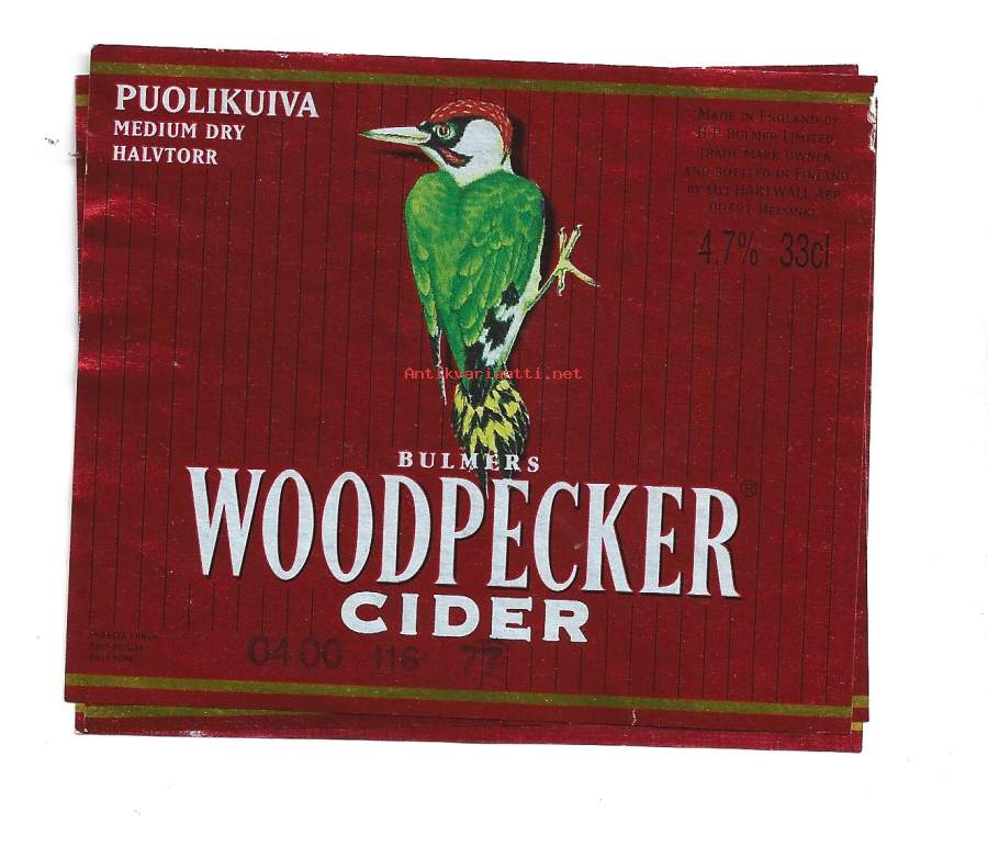 Woodpecker Cider puolikuiva Apple - siiderietiketti viinaetiketti