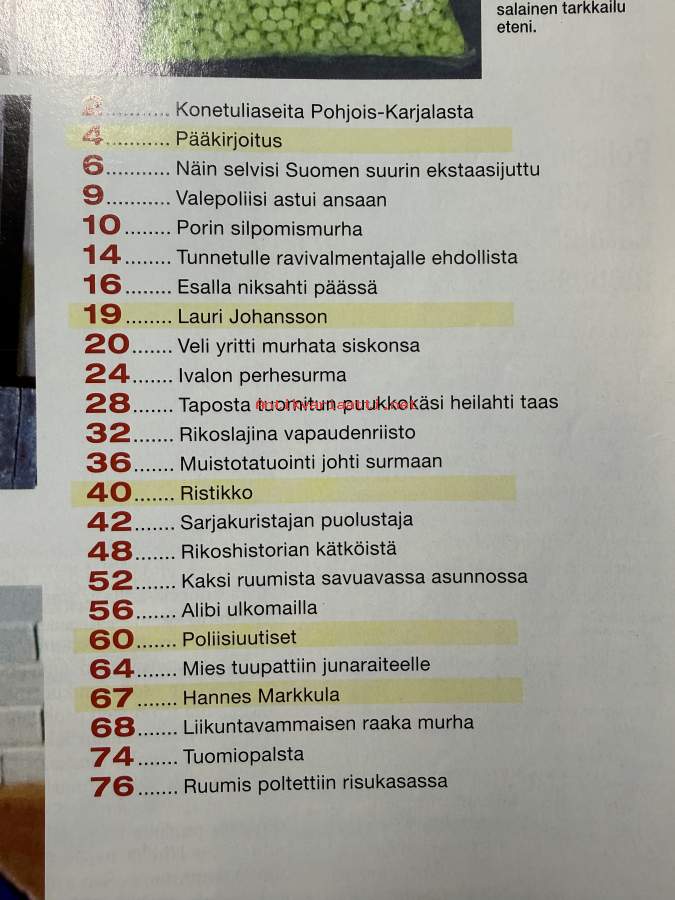 Alibi 2017 nr 11, Polttopulloisku pizzeriaan - Rainer Espoossa, Iskelmälaulaja puukotti ihailijansa hengiltä, Niko Kunnasmäki surmasi tuntemattoman miehen