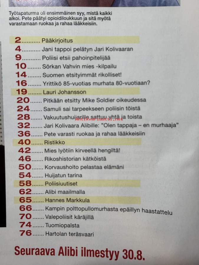 Alibi 2017 nr 11, Polttopulloisku pizzeriaan - Rainer Espoossa, Iskelmälaulaja puukotti ihailijansa hengiltä, Niko Kunnasmäki surmasi tuntemattoman miehen