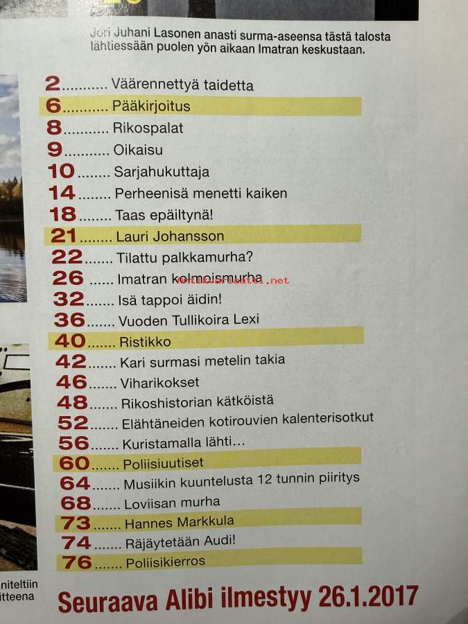 Alibi 2016 nr 11, Jari Salminen murhattiin Bulgariassa - äiti Mari Selenius kertoo, Arvoluljetusauton ryöstö Suomusjärvi, Jokainen kerjuukuppi on osa rikollisliigaa