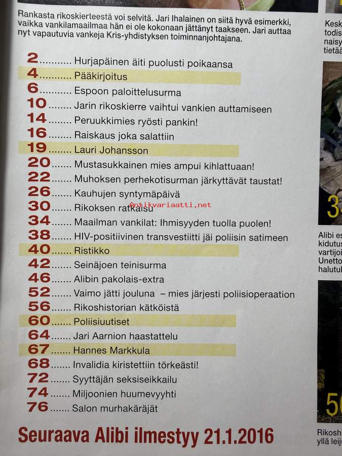 Alibi 2017 nr 11, Polttopulloisku pizzeriaan - Rainer Espoossa, Iskelmälaulaja puukotti ihailijansa hengiltä, Niko Kunnasmäki surmasi tuntemattoman miehen