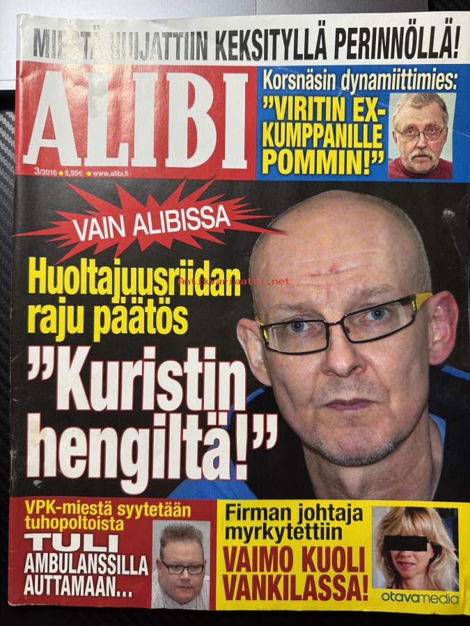 Alibi 2016 nr 11, Jari Salminen murhattiin Bulgariassa - äiti Mari Selenius kertoo, Arvoluljetusauton ryöstö Suomusjärvi, Jokainen kerjuukuppi on osa rikollisliigaa