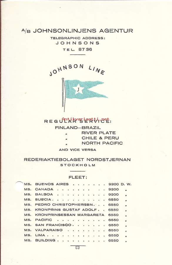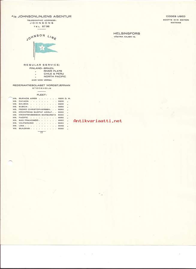 Johnsonslinjens Agentur Ab Helsingfors firmalomake blanko