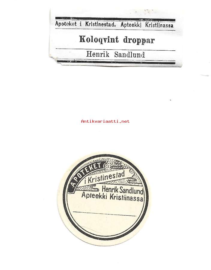 Apteekki Kristiinassa / Aoteket i Kristinestad Henrik Sandlund - apteekkietiketti 2 kpl