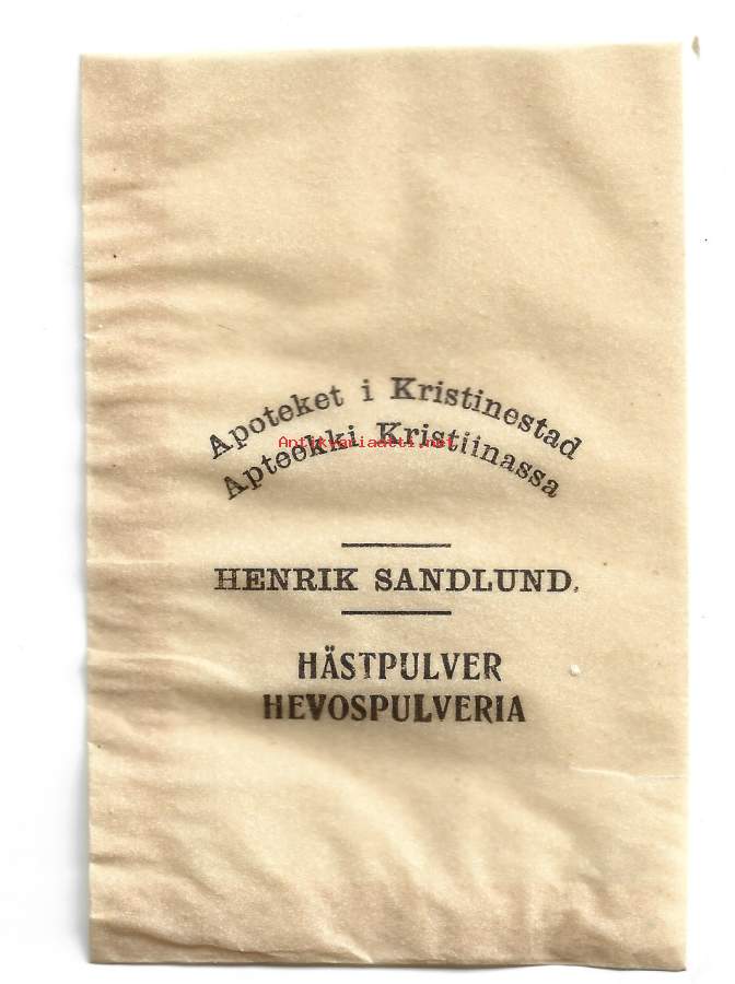 Apteekki Kristiinassa / Aoteket i Kristinestad Henrik Sandlund - apteekkipussi Hevospulveria
