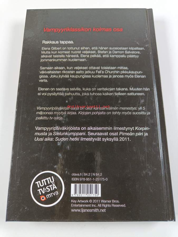 Vampyyripäiväkirjat 3 - Verivala. (Fantasiaromaani), 2011. 1.p. Vampyyripäiväkirjojen kolmas osa hyytää veren.