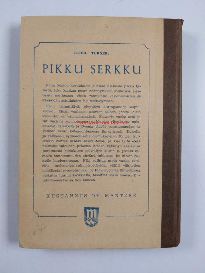 Tyydyttävä. Tarkempi kuntoluokka: K2+ ; Jonkin verran kulumaa, pienoista kolhua selkämyksen päissä, aivan pienoista repeämää selkämyksen yläkulmassa, selkämyksessä hieman vinoutta