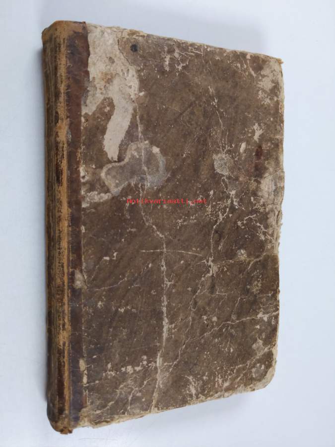 teksti fraktuuraa ; etukannen sisäpuolella teksti Miina Heikkilä ; yhden sivun yläkulmasta puuttuu palanen (vaikuttaa noin kahden rivin lukemiseen) ; joidenkin sivujen marginaalien reunassa aivan pienoisia palasia puuttuu ; kansien sisäpuolella tahramaisia jälkiä