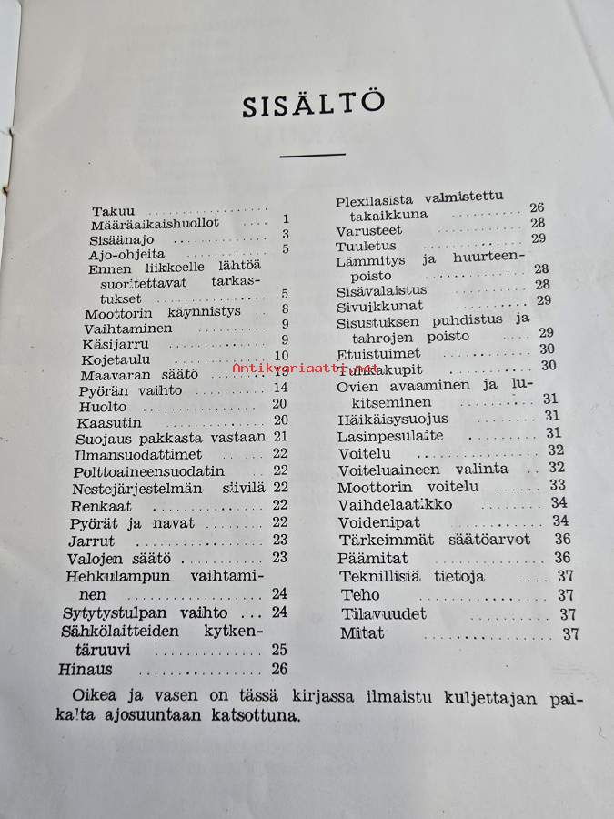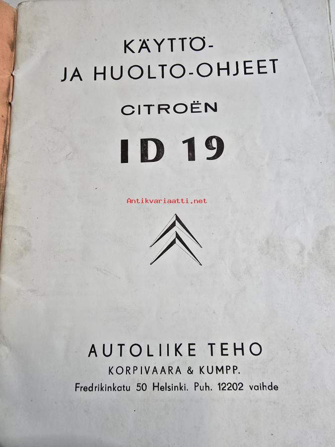 Citroen ID 19 käyttö- ja huolto-ohjeet 1959