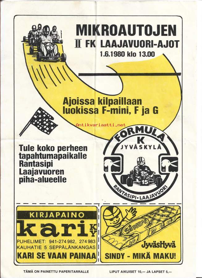 Mikroautojen Laajavuori ajot 1980 iso tarra A4 kokotarra