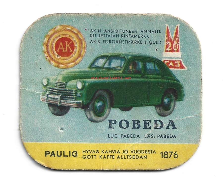 Pobeda - autokortti, keräilykuva, kahvipakettikuva