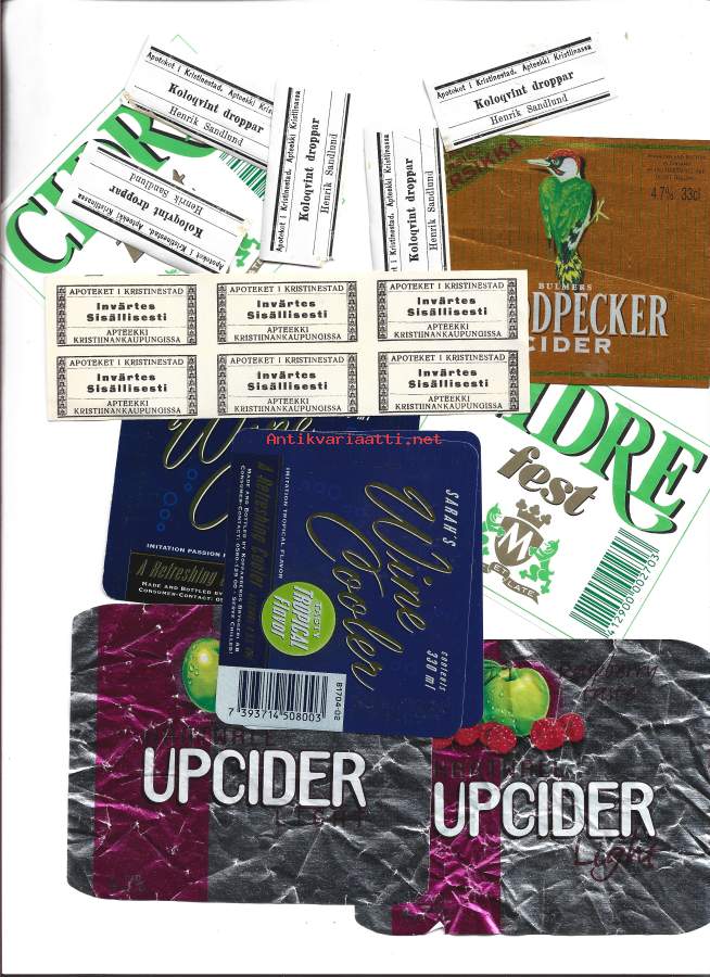 Sekal erä apteekki- ja viinaetikettejä