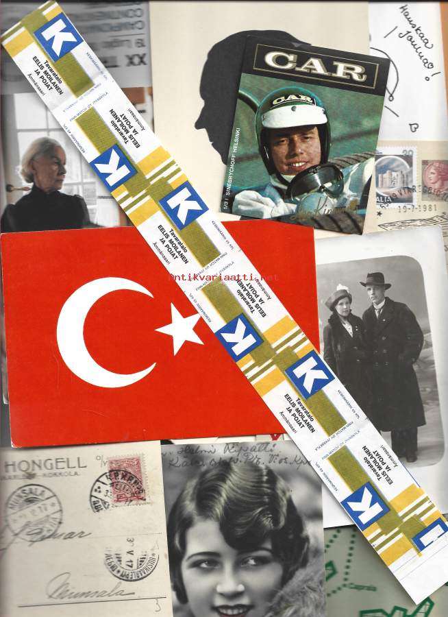Sekal erä valokuvia, lomakkeita, tarroja yms n 15 kpl