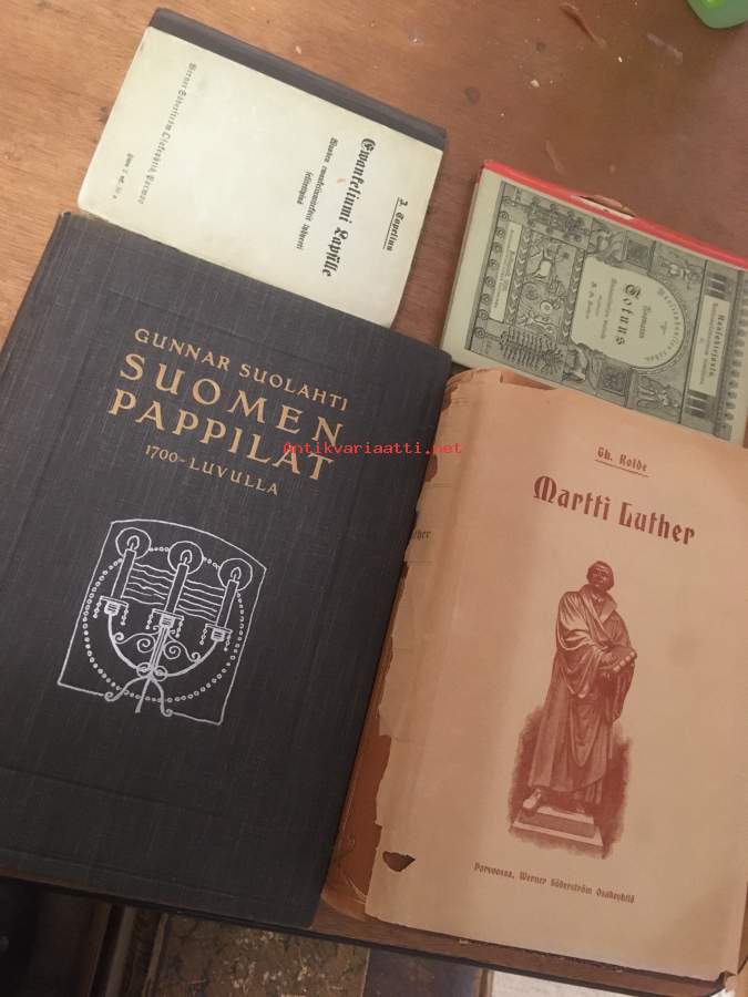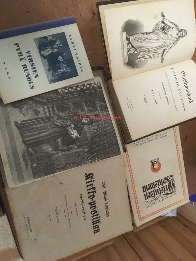 Parisataa kirjaa uskontoa ja teolgiaa joka lähtöön mukana myös löytöjä ja harvinaisempaakin kirjaa ja jopa hepreaaMyydään erikseen tai kaikki 5 laatikkoa kerralla !Keskihinta 5€ luokkaa...Tässä lista !:laatikko1Suolahti Suomen pappilat 1700-luvulla 1912 Godenhjelm Suomen pappilat 1935 Sance Raamatun totuus muinaislöytöjen valossa 1895 Topelius evankeliumi lapsille vuoden evankeliumin tekstit lyhyesti selitettyinä 1893tuomenoksa Raamatun naiskohtaloita 1937 tuomenoksa Raamatun naiskohtaloita 3 1930Suomen uskonnollisten liikkeiden historiasta asiakirjoja ja tutkimuksia II III JA IV 1939 voipio virsien runousoppi 1930 colliander Suomen kirkon papisto 19 vuosisadalla vihot 1-9 ja 12 toinen osa 1912Hoffman lasten Raamatun kertomuskirja 1999 Takala Suomen evankelisen liikkeen historia 1-3 1929 1933 1948 Takala Suomen evankelisen liikkeen historia 1-2 Ingman Raamatun historia kansakouluja varten 1915 kauppala lähetysmartturi historia 1 Afrikka 1930 sanningswittnet evankelisluterik weckotigning för den inremissionen 1889 ja 1990 vuosikerratLuther huonepostilla kuudes painos 1945 farrar Kristus i världshistorien 1900alopaeus gods rikes historia 1-2 1887salomies uuden testamentin ajan historia 1940kolbe Martti Luther elämäkerta 1-2 1901Nilsen kristillisen kirkon historia vanhan ja keskiajan kirkkohistoria vuoteen 1300 1913 Biblia 1-2 1878 kotelossa laatikko 2 Pietilä kristillinen dogmatiikka 1-3 1932 Lutherin valitut teokset 1-2 reformatooriset kirjoitukset 1908 1910salomies Suomen kirkon historia 1- 2 Suomen kirkko keskiaikana - uskonpuhdistuksen ja kirkollisuuden puhdasoppisuuden aika 1949 nuori Siion 1929 laulukirja kotia pyhäkouluja ja muita kouluja varten lasten postilla eli kolmannen vuosikerran eli evankeliumitekstien yksinkertainen selitys 1896 lasten postilla eli kaikkien sunnuntai ja juhlapäiviä ensimmäisen vuosikerran evankeliumin tekstien lyhyt ja yksinkertainen selitys 1894 Paul Fur hertz und gemut der kleinen 1920 kittel Biblia hebraica 1-2 1913 uusi testamentti ja psaltari 1870 ullman evangelisk luthersk-liturgik 1-2 1889 schneller Jeesuksen seurassa kuvauksia vapahtajan elämästä Pyhän maan olojen valossa 1905 fricke biblische Personen des neuen testaments 1+ 2 1908 1910 terveellinen oppi 1 2 ja 3 1889 evankeliumisaarnojastarkers biblioverk 1 Matteus,4 apostolien ,3Johannes evankeliumi 5 roomalaiskirjeet kaksi Markus ja Luukas 1873 Luther kristityn vapaus neljäs painos 1886 Siionin kannel Malmivaara kaitatie Joonan kirjan valossa 1946 bibel. 1913Nya testamentet 1898 suomalainen virsikirja 1889 virsikirja Siionin kannel 1912 kotelossa muroma Jumala on rakkaus 1943 kuningas Daavidin 117 psalmin selitys 1874 cheSiionin kannel nuoteilla 1913 kaftan dogmatik 1909sellin einleitung in das alte testament 1914 rickenbach christliche gemeindepastoration 1898tohtori Martti lutheruksen kirkkopostilla evankeliumin osa talvipuoli 1873 Dahlberg uusi testamentti selityksillä 1885 laatikko 3 wislöff minä uskon pyhään henkeen 1943Luther hengellinen virvoittaja jokapäiväisiä Jumalan sanan tutkintoja 1875 bugge apostelen Paulus breve 1879 Simojoki kristinopin opetus 1950Lauren predikningar 1-2 1845 suomalainen virsikirja evankelisluterilaiselle seurakunnille 1915 voipio virsiemme synty ja olemus evankelisen hymnologian pääpiirteet 1950 Lutherin kirkkopostilla 1883 1-2Lutherin huonepostilla 1878 autuus pakanoille evankeliumiyhdistyksen lähetyslehti 1923 maaliskuu Mannermaa uuden testamentin selitysteos 1 4 evankeliumia 1919 nuorison ystävä Suomen evankelis-luterilaisen yhdistyksen nuorisoliiton lehti vuosikerrat 1907-1909 Sundvall Raamatun historia 1924 geftrin muutamia mietteitä Jumalan sanan ja erittäin taivaan valtakunnan avainten käytännöstä jälkimmäinen osa 1876 vaaranen johdatus vanhan testamentin biblian historian kertomuksiin 1885 ensimmäinen vihkomhedberg ainoa autuuden tie 1881 Trine sopusoinnussa näkymättömän kanssa 1949 uusi testamentti 1906 lutheruksen lyhyt epistolapostilla 1880 valoa pimeässä kuukauden joka päivälle helmiä Jumalan sanasta sairaille 1913 haug de christnas antiqviteter kristilliset muinaismuistot 1813March Raamatun yökohtauksia 1903 harteva uuden testamentin aakkosellinen hakemisto 1924 harms ahtisaarnoja 1900 fricke bibelkude hilfsbuch beim bibellesen 1-21904johan arndts postilla 1873 buchsel muistoja maapaistorin elämästä 1888 Kaila tulkoon sinun valtakuntasi Suomen pappien saarnoja vanhan testamentin teksteistä 1915 ceriver sielun Aarre 1 2 ja 3 1889 laatikko 4 pyhä Raamattu 1960 voipio virsien pyhä runous 1941 Siionin kuninkaan tytärten kiitos ja ylistys veisut 1894 ingraham Taavetin huoneen herra eli kolme vuotta Jerusalemin pyhässä kaupungissa 1884 kahnis protestantismens inre utveckling 1876 gantius uskovaisten hengellinen aarreaitta 1876 d'aubigne kuudennentoista vuosisadan uskonpuhdistuksen historia2- 3.1886tohtori Martti lutheruksen ahtisaarnoja 1877 gestrin oletkos pyhä tutkinto jonka Pyhän Raamatun ja tohtori Lutherin todistuksen johdolla kirjoitti Pyhän Pietarin epistolat tohtori Matti lutheruksen selityksellä 1884 rosenius ihmisen lankeemus ja hyvitys tutkiskeluja 1888 martensen den kristlika etiken 1896 suomalainen virsi kirja ohjepainos 1888 Raamatun kuvasto 1908 hjelt Raamatun maisemia 1929 pyhä Raamattu 1957 Aulen kristinuskon voittokulku lähetyshistoria 1927 Miro kärsimyshistorian henkilöitä 1927 schlatter johdatus raamattuun 1904Luther autuuden lähteillä selvityksiä vanha testamentillisiin teksteihin 1917 Gummerus kirkkohistoria lyseoita varten kolmas painos 1908 svensk psalm book 1915 Raamatun avain raamatullinen asia ja nimi sanasto, rekisteri 1916 lobstein silmäyksiä ihmissydämeen 15 tutkistelemusta 1883 terveellinen oppi 2 1890 luterilaisen seurakunnan opin ja uskon tunnustuskirjat 1878laatikko 5Tamminen valtamerten takana lähetysasioilla Amerikassa 1926 söndagsskolvännen 1-11 1888 fra bethesda 14 1889 sidotut kirjaksimatkalauluja tiellä taivaalliseen siioniin 