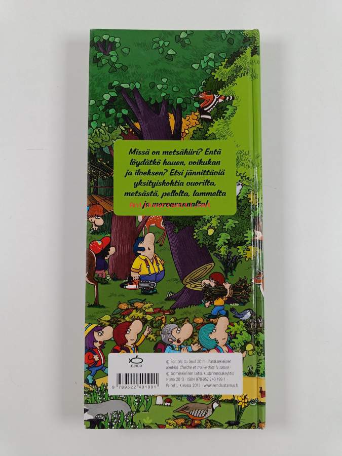 Alkuteos: Cherche et trouve dans la natureAsiasanat: luonto, eläimet, lastenkirjallisuus, metsät, pellot, kuvasanakirjat, lammet, vuoret, paksulehtiset kirjat, merenrannat, piilokuvakirjat