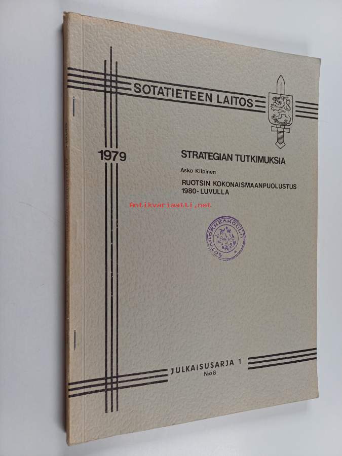 Koko nimi: Ruotsin kokonaismaanpuolustus 1980-luvulla : Ruotsin kokonaismaanpuolustuksen 1980- ja 1990-luvuilla tapahtuvan kehityksen arviointia vuoden 1977 puolustuspäätöksen perusteellaMerkinnät: omistajamerkintä (leima)Sarja: Sotatieteen laitos. Julkaisusarja 1, Strategian tutkimuksia n:o 8Asiasanat: maanpuolustus, landets försvar