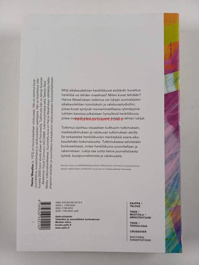 Sarja: Musta taide; Aalto-yliopiston julkaisusarja. Doctoral dissertations 2/2014; Aalto Photo BooksAsiasanat: väitöskirjat, valokuvaus, aikakauslehdet, mediakulttuuri, mediatutkimus, henkilövalokuvaus, kuvajournalismi, visuaalinen kulttuuri