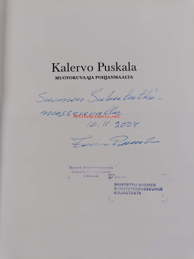 Kalervo Puskala : Muotokuvaaja Pohjanmaalta (signeerattu, tekijän omiste)