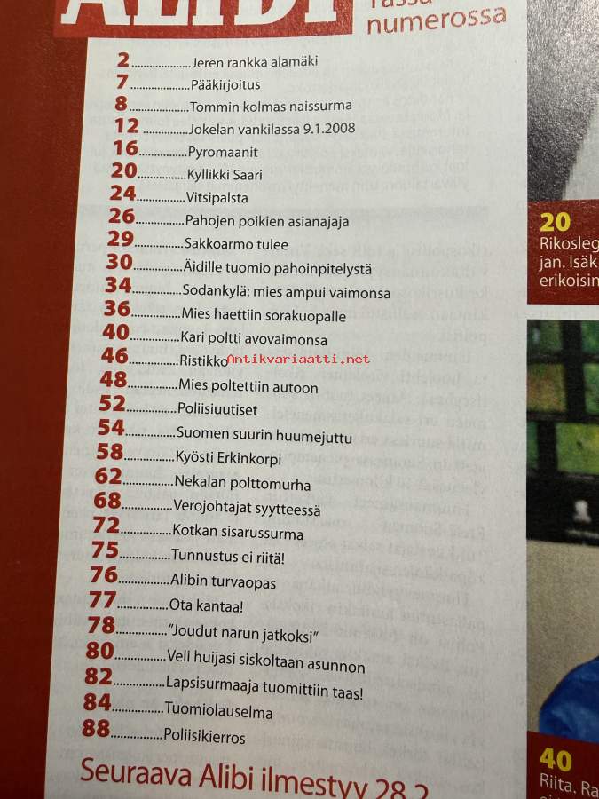 Alibi 2008 nr 2, katso sisällysluettelo