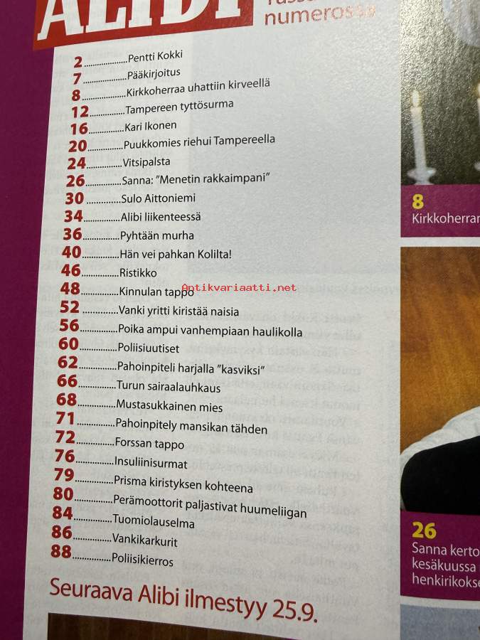 Alibi 2008 nr 9, katso sisällysluettelo