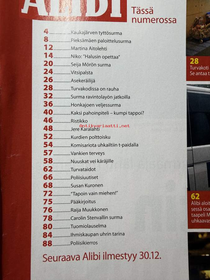 Alibi 2008 nr 12, katso sisällysluettelo