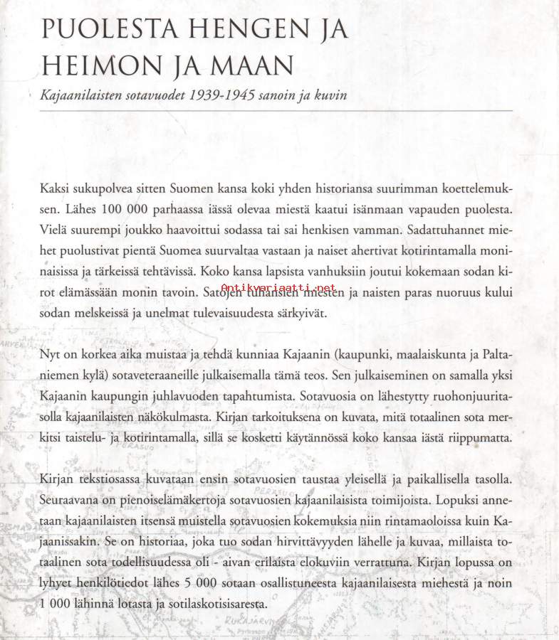 Puolesta hengen ja heimon ja maan : Kajaanilaisten sotavuodet 1939-1945 sanoin ja kuvin