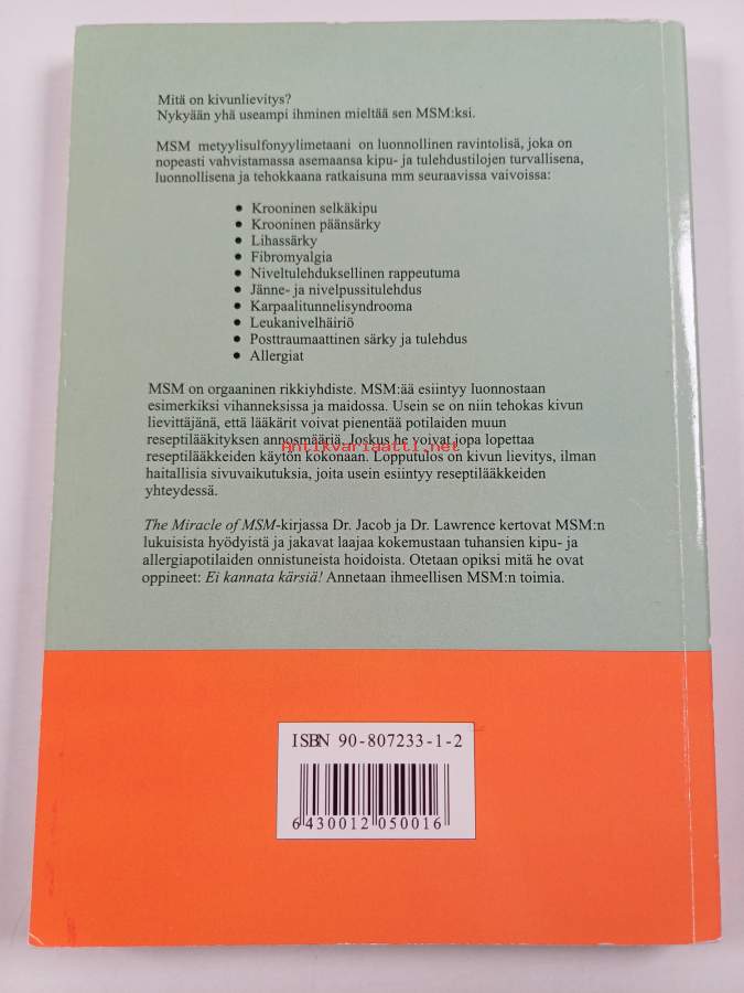 Muu(t) tekijä(t): Martin Zucker, Ronald M Lawrence ym.Alkuteos: The miracle of MSM : the natural solution for pain