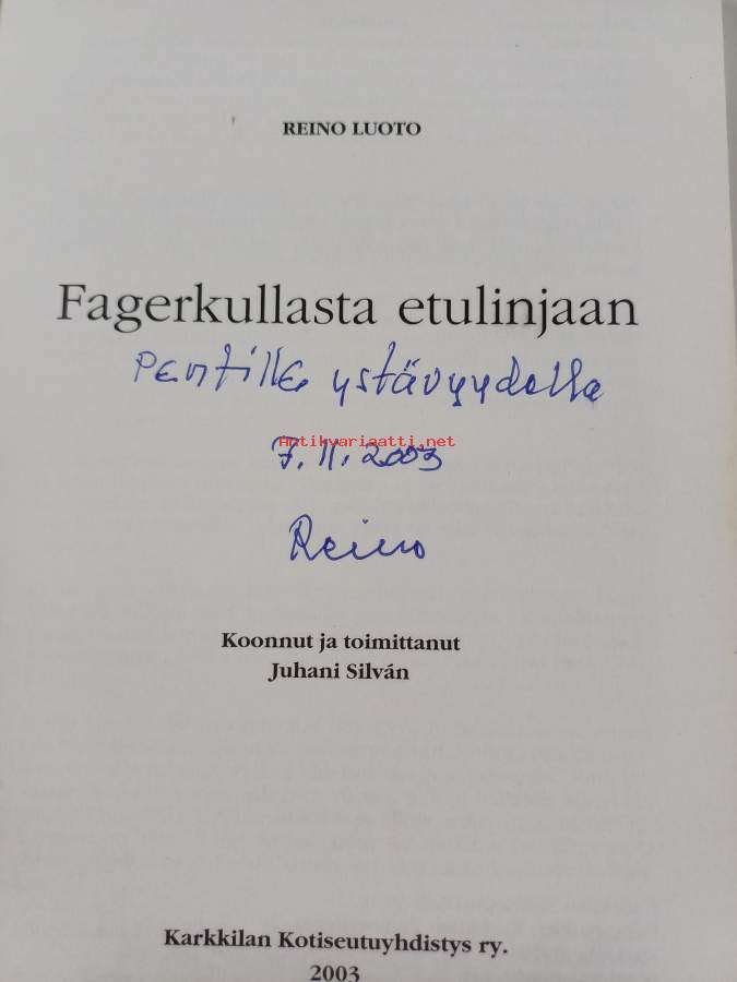 Fagerkullasta etulinjaan (signeerattu, tekijän omiste)