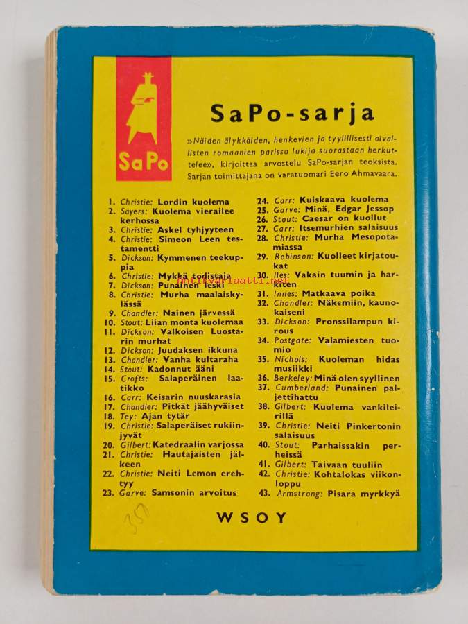 Muu(t) tekijä(t): Pauli A. KopperiSarja: Sapo-sarjaAlkuteos: Adram of poisonAsiasanat: rikoskirjallisuus