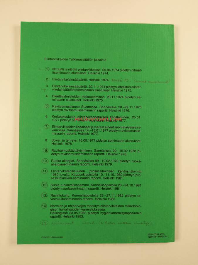 Sarja: Julkaisu / Elintarvikkeiden tutkimussäätiö n:o 14Asiasanat: elintarvikkeet, mikro-organismit, elintarvikehygienia, elintarvikevalvonta, livsmedel, livsmedelshygien, livsmedelsövervakning, mikroorganismer, elintarvikemikrobiologia, livsmedelsmikrobiologi