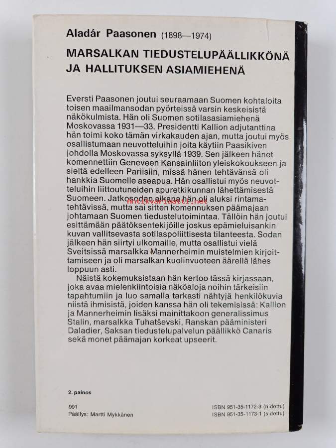 Viisi sotakirjaa: Itsenäisen Suomen alkuvuosikymmeniltä, Marsalkan tiedustelupäällikkönä, Oliko hangella verta?. . . .
