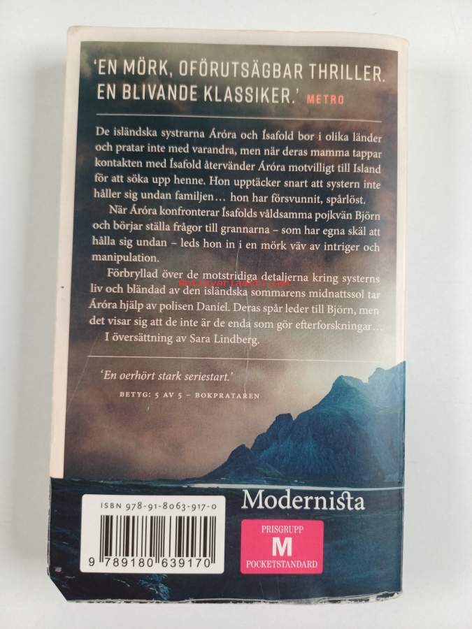 Muu(t) tekijä(t): Sara LindbergSarja: Áróra-serien 1Alkuteos: Helköld sólAsiasanat: mänskliga relationer, kvinnor, forskning, syskon, försvinnande, återkomst, försvunna, systrar, hembygd, söndring