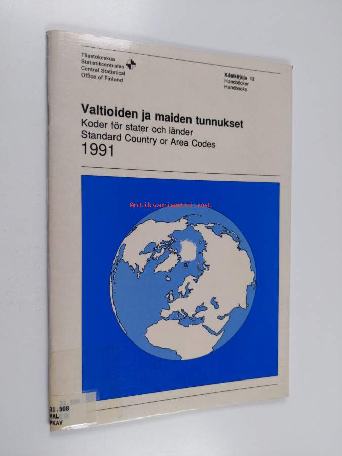 Merkinnät: omistajamerkintä (leima)Sarja: Käsikirjoja / Tilastokeskus 12; Käsikirjoja / Tilastokeskus = Handböcker / Statistikcentralen 12Asiasanat: koodit, valtiot, tilastot, valtio-oppi, luokitukset, tunnukset, statistik (data), stater, alueluokitukset, aluejako, klassifikationer, beteckningar, statskunskap, koder, regionindelning, regionala indelningar